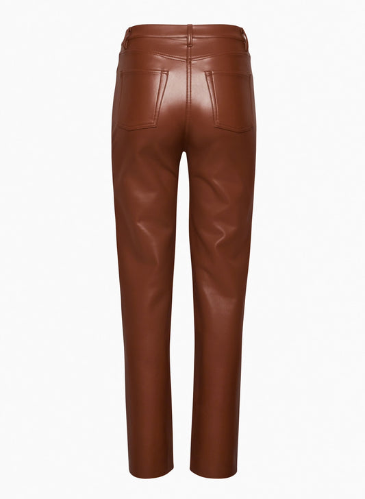 Wilfred Aritzia Melina Vegan Faux Leather Cognac Straight Leg Pants Women SIZE 2