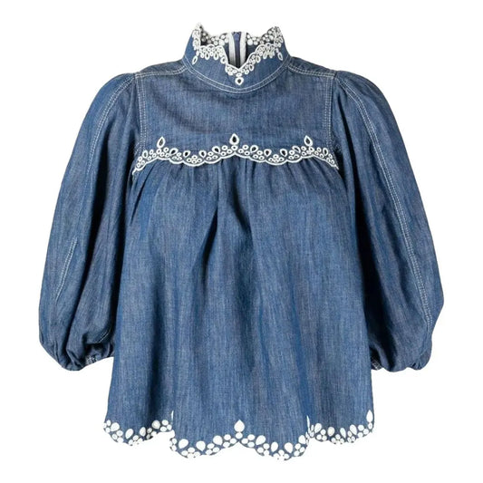 ZIMMERMANN NWT Laurel scallop denim embroidery blouse, SIZE AU 2 (MEDIUM)