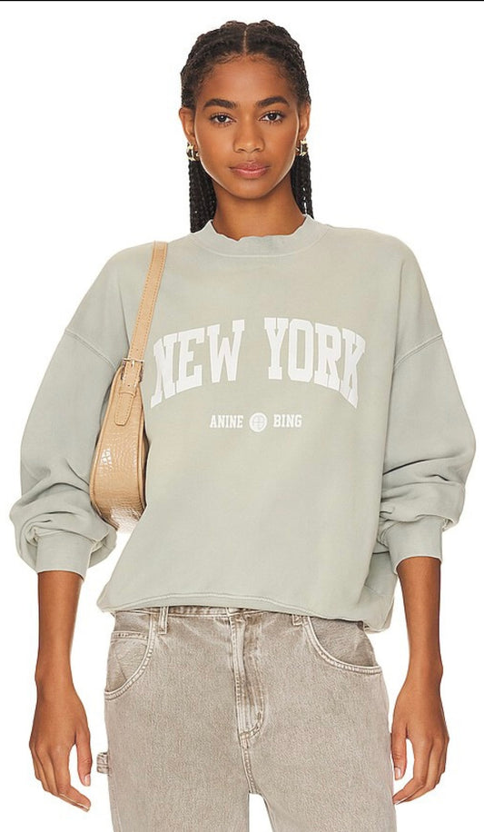 ANINE BING Jaci Sweatshirt University New York In Sage - Washed Faded Seafoam, small