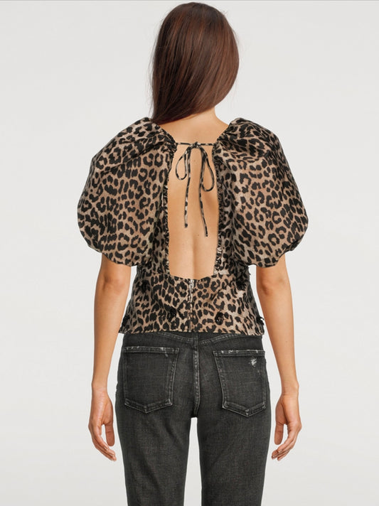 GANNI Re-Cut Crispy Jacquard Open-Back Blouse, SIZE 36