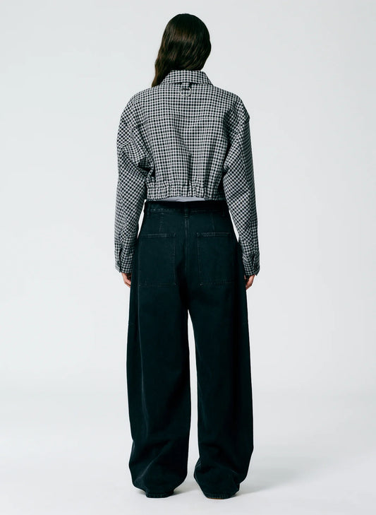 Tibi Double Faced Menswear Check Cropped Jean Jacket, Medium