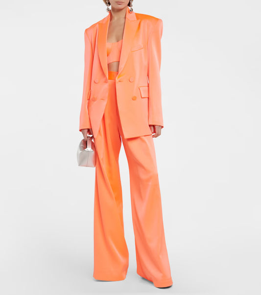ALEX PERRY Double-breasted Neon Satin-crepe Blazer, UK Size 12
