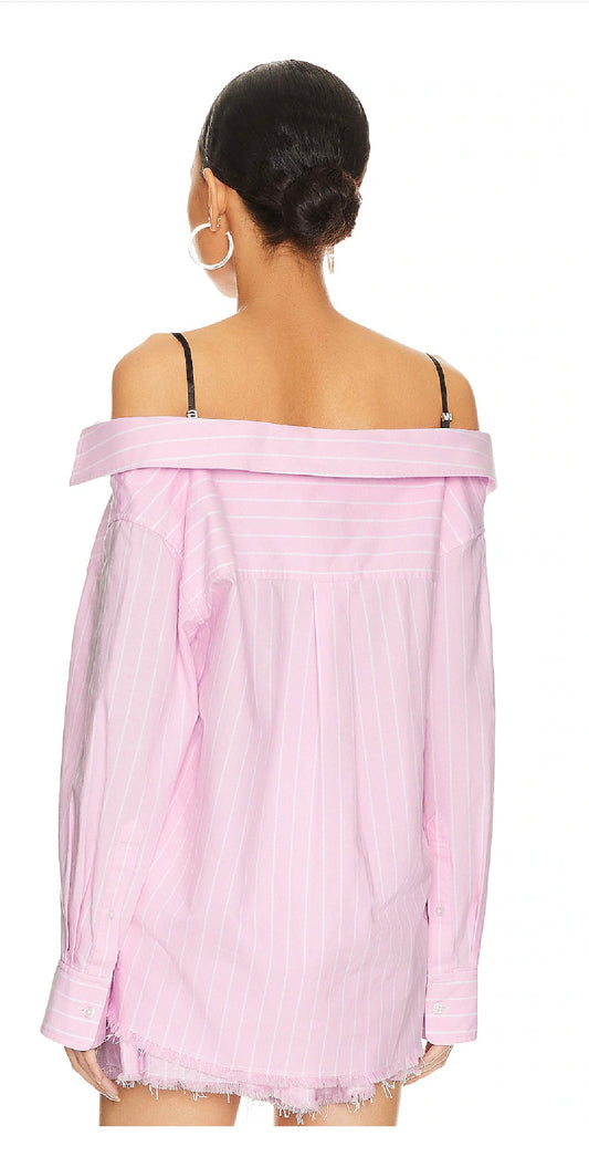 Alexander Wang off Shoulder Boyfriend Shirt W/ Charm Bra Strap, Medium