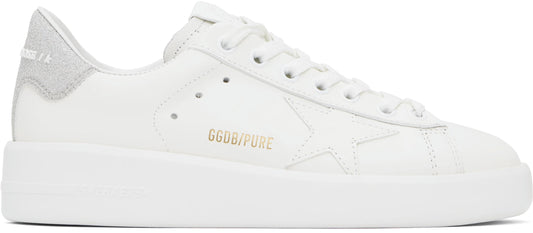 GOLDEN GOOSE White & Silver Purestar Sneakers, Size 36