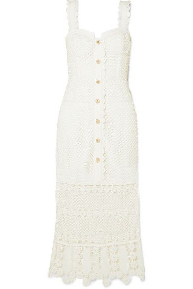 Self-Portrait Fishnet Crochet Lace Pattern Midi Dress, Size 6