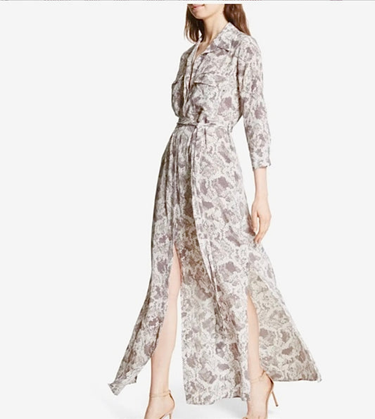L’AGENCE Cameron Snake Print Silk Maxi Shirtdress, Small