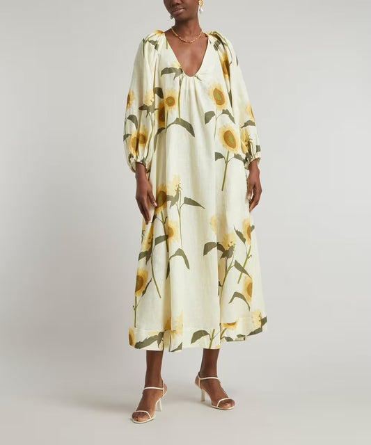BERNADETTE Georgette Sunflower-Print Maxi-Dress, Size 36