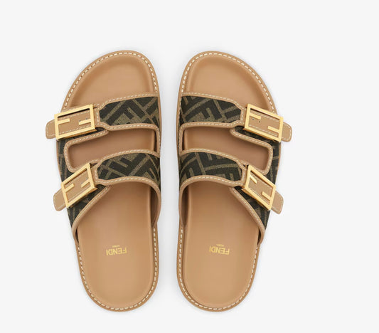Fendi Feel Brown FF fabric slides, Size 36.5