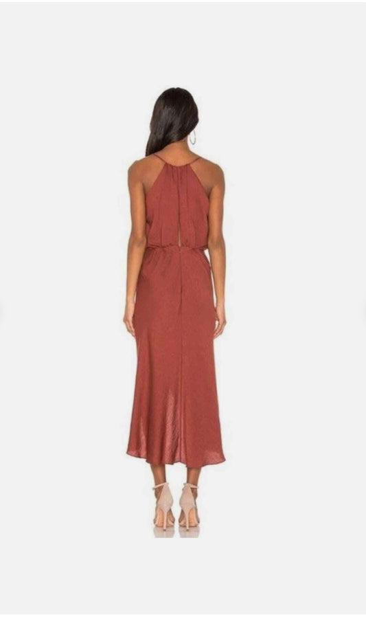 Joie Rust Tanika Twisted Front Wrap Slip Midi Dress Medium