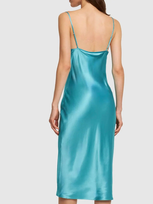 FLEUR DU MAL Long Cowl Neck Slip Silk Midi Dress, Small