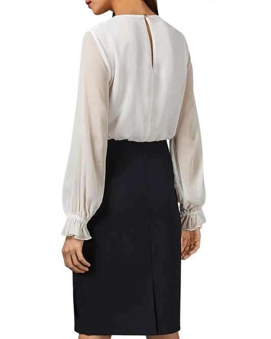 Ted Baker Lizzata Working Title Pleated Combo Dress in Black & White, Medium