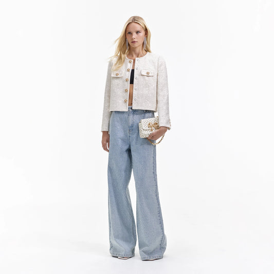 Self Portrait Boucle cream Sequin Jacket, Size 4