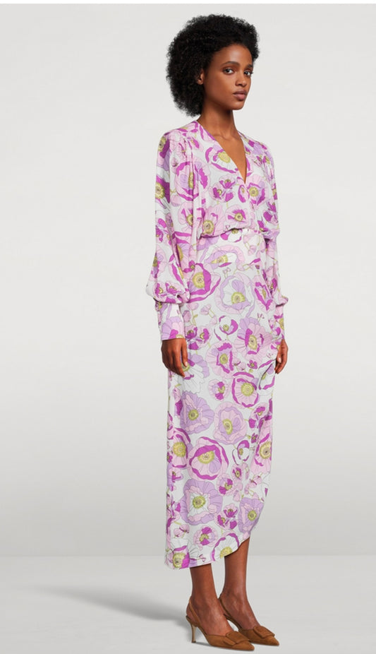 SMYTHE NWT Draped Midi Dress In Floral Print, SIZE 6