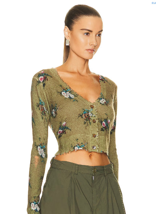 R13 Khaki Distressed Baby Cardigan, xsmall