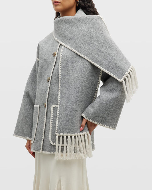 TOTEME Embroidered scarf jacket grey mélange, SIZE 36