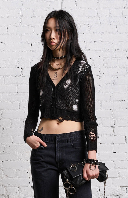 R13 NWT Black Double Layer Cardigan, SMALL
