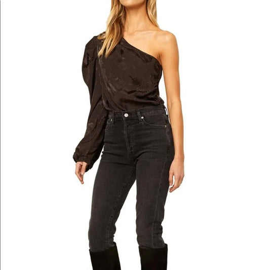 Misa Los Angeles Bianca One Shoulder Bodysuit in Black Floral Size XSMALL