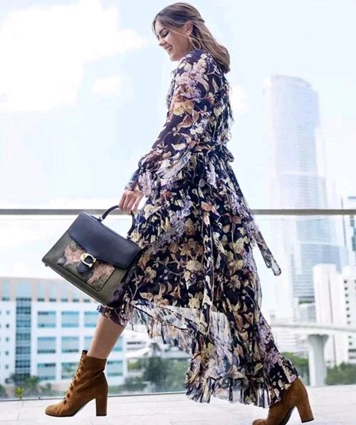 Zimmermann Sabotage Ruffle Midi Dress Wisteria Midnight, SIZE 1