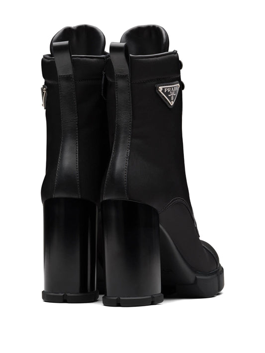 PRADA Spazzolato Re-Nylon Metal Triangle Logo 110mm Ankle Boots 36 Black