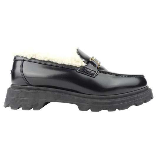 Christian Dior Black Brushed Calfskin Leather and Shearling Dior Code Loafers - 36.5