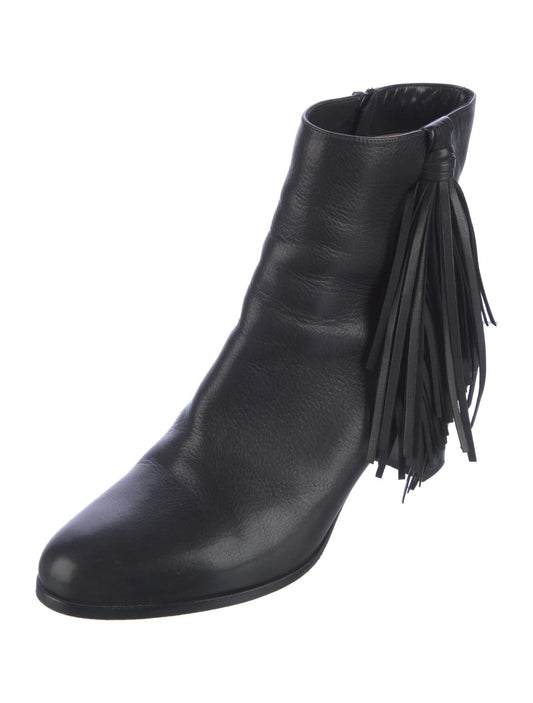 Christian Louboutin Jimmynetta Black Calfskin Leather Fringe Ankle Chelsea Boots, Size 38