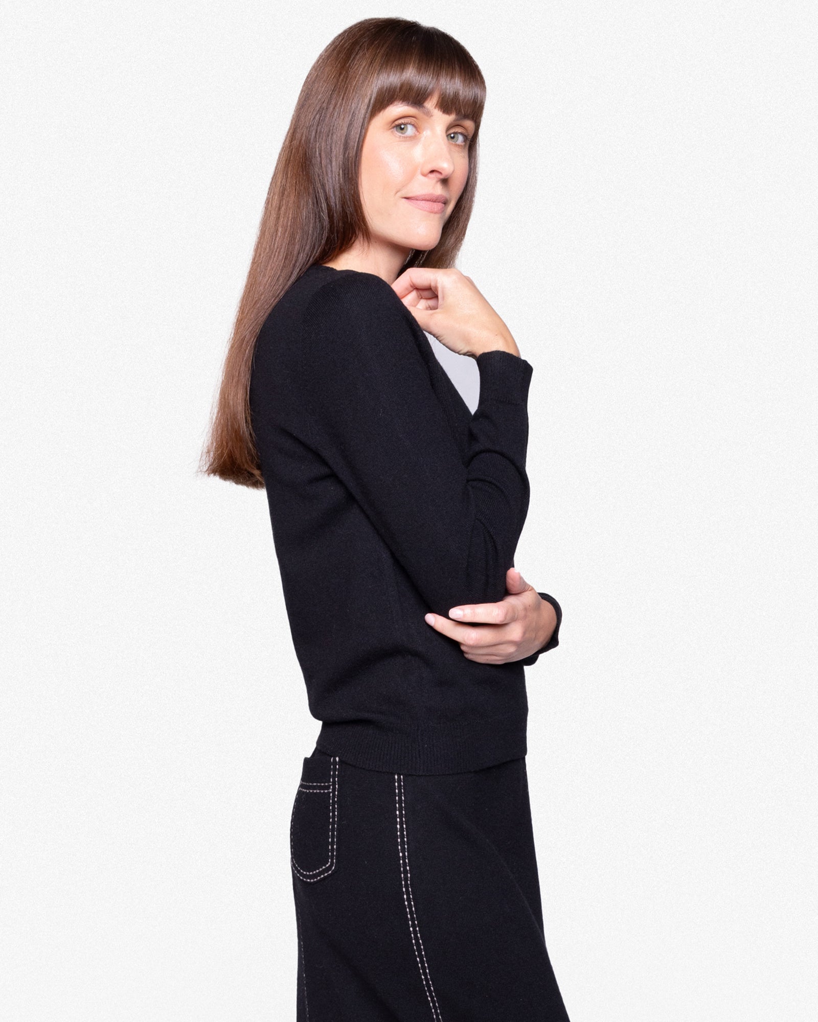 BLACK GOAT FITTED V-NECK, SMALL