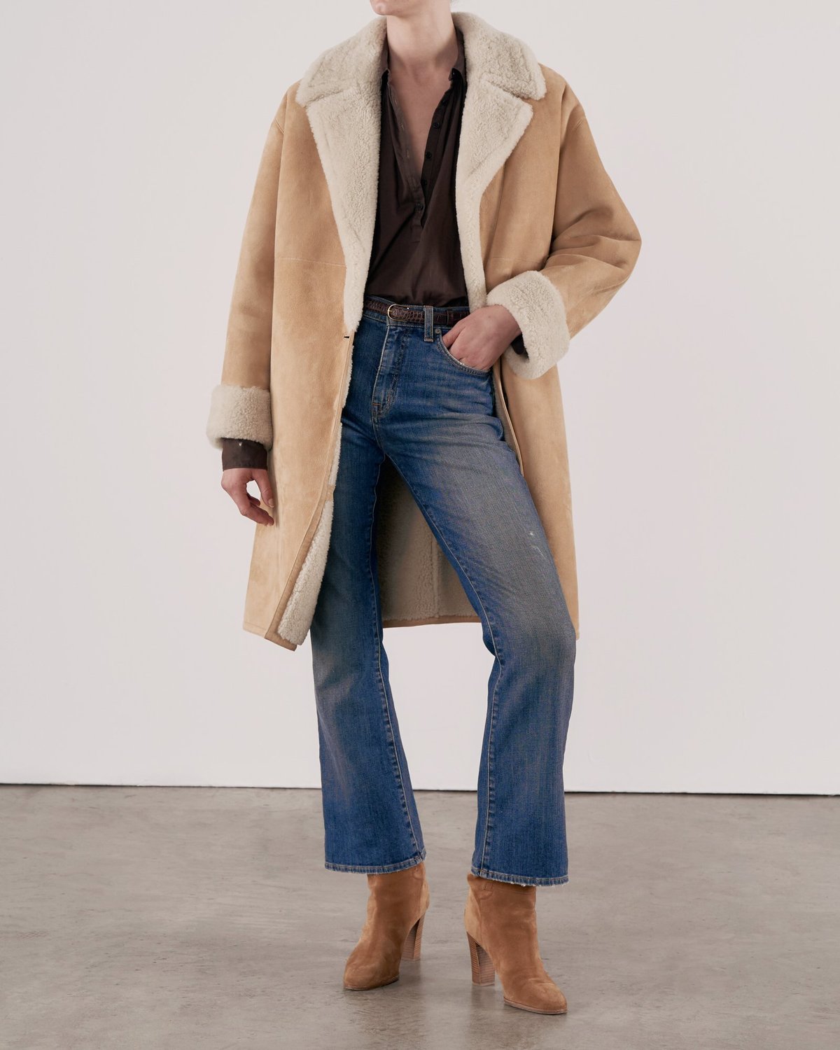 Made in USA. Machine wash. Zip fly with button closure. 5-pocket design. Light whiskering and distressed detail. 16" / 41 cm at the knee breaks to 17" / 43 cm at the leg opening.