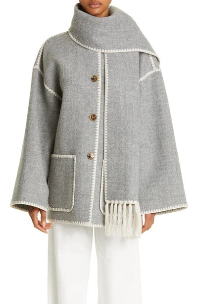 TOTEME coat jacket with an attached scarf that's embroidered along the edges for an artisanal finish. It’s made from heavy and structured wool-blend felt certified by the Responsible Wool Standard