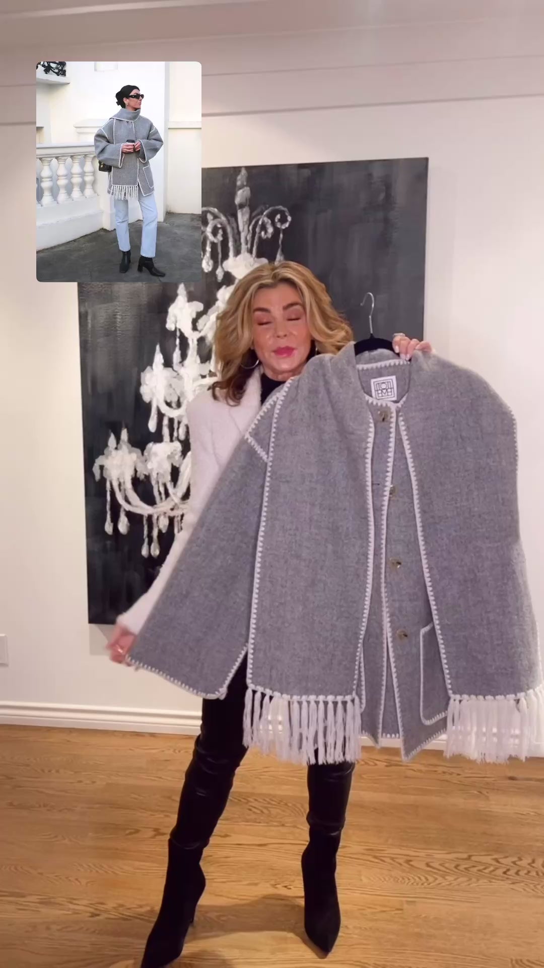 TOTEME Embroidered scarf jacket grey mélange, SIZE 36
