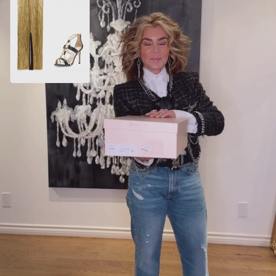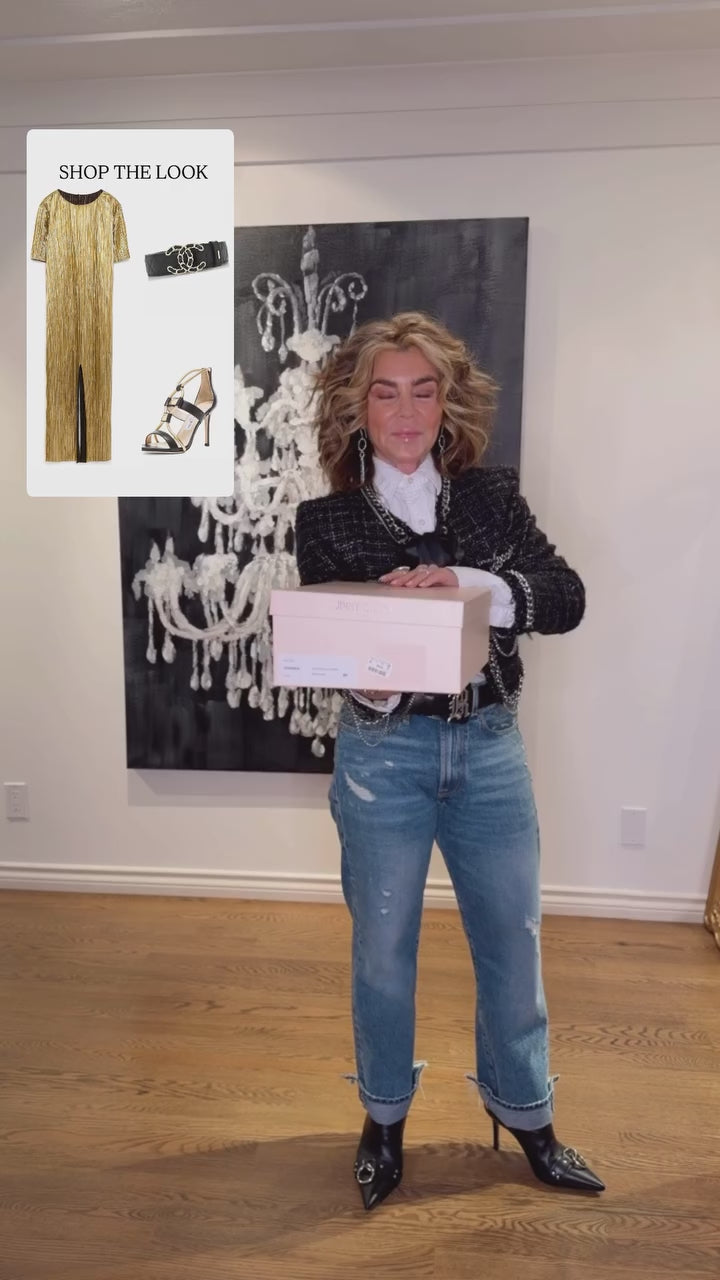 Sheer elegance and sophistication is exuded by these Jimmy Choo Venus sandals. They are designed with black and gold straps that intertwine over the vamps and are detailed with gold-tone pyramids. Equipped with zip fastenings at the counters, these sandals come with 11cm heels and leather lined insoles.