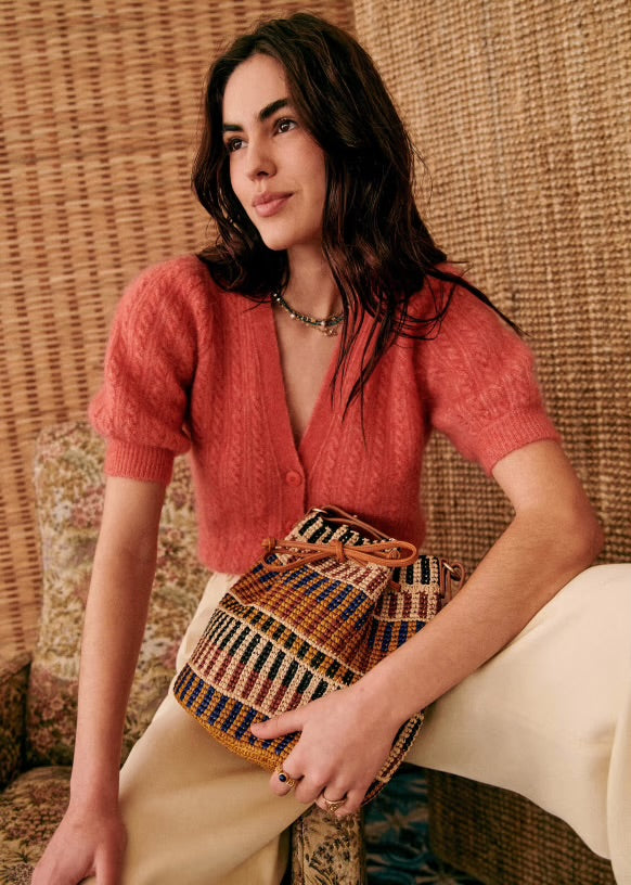 - Short-sleeved cardigan in kid mohair and wool