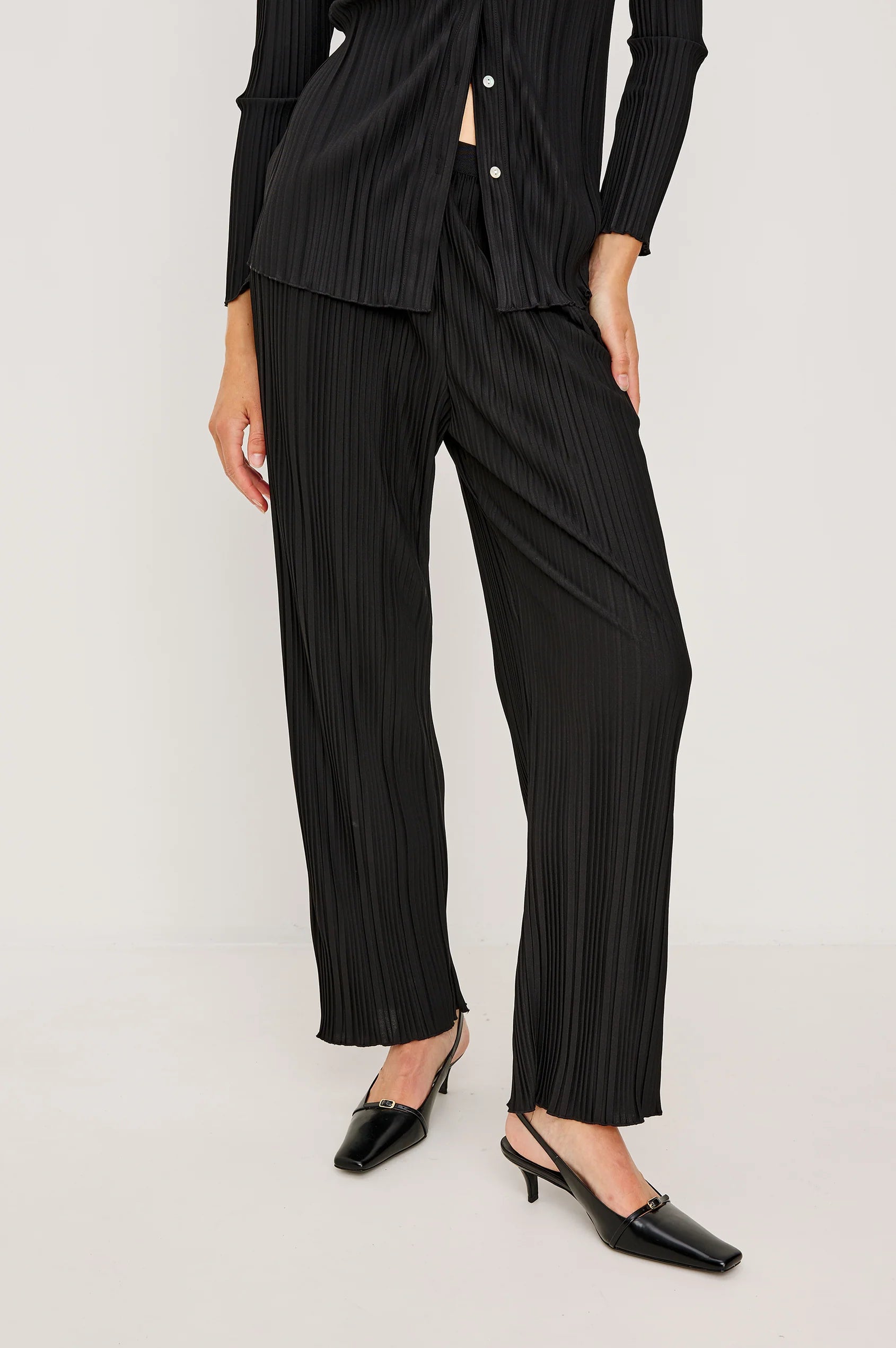 If you never want to take the Liana off, we don’t blame you. These trousers feel like elevated loungewear, with an exposed waistband and variated pleating. Cut from a heavyweight plissé with a flattering high waist fit, this is the perfect pant for all-day wear.