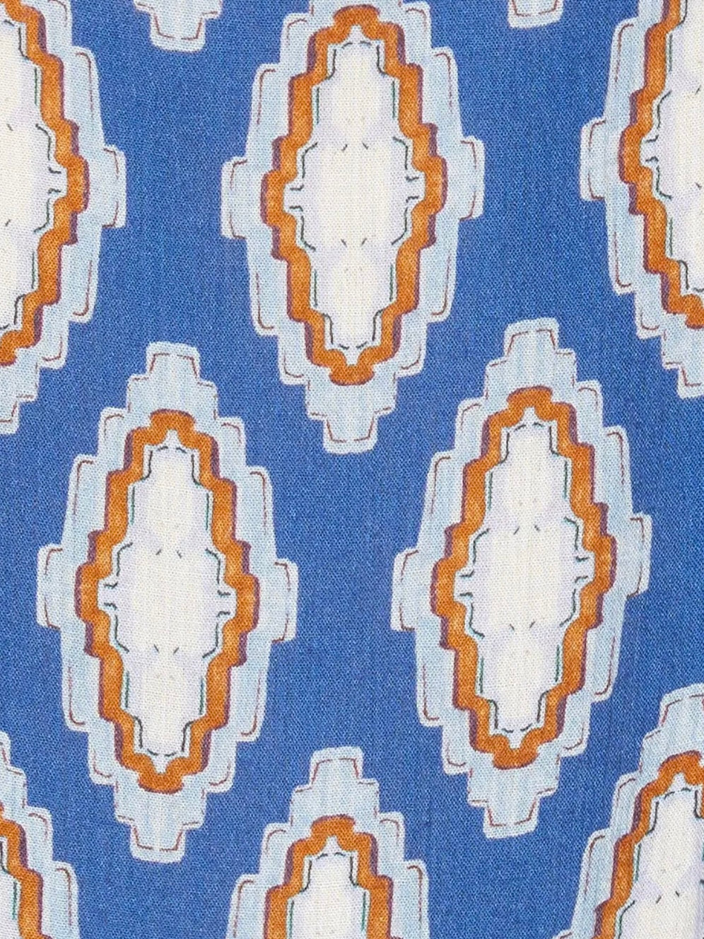 This flowy medallion-print blouse features a Peter Pan collar and gathered welt pockets for an unexpected finished. 24 1/2" length (size small) Peter Pan collar Three-quarter sleeves 100% viscose Dry clean Made in Japan