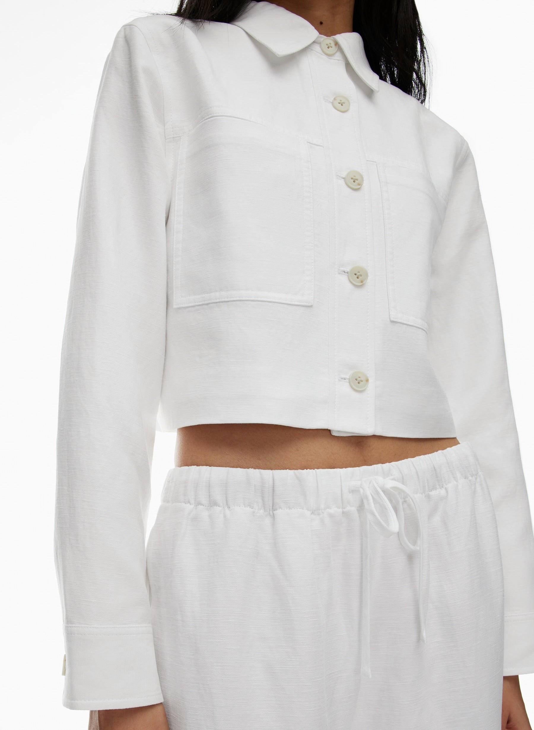 It's still a jacket. Specifically, it's a perfect little button-up jacket with chest pockets and a hem that hits just right. It’s cut from CruiseLinen™ — soft, airy fabric that combines naturally textured linen with TENCEL™ Lyocell. For wherever the day takes you